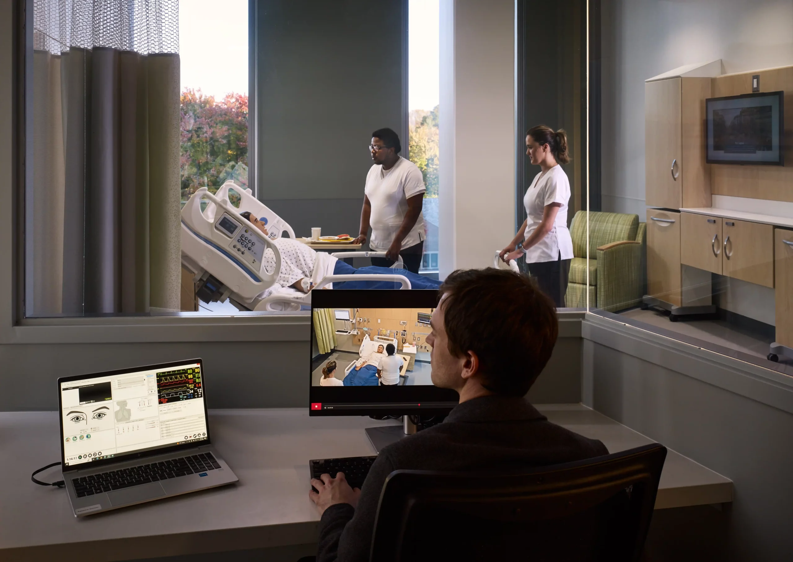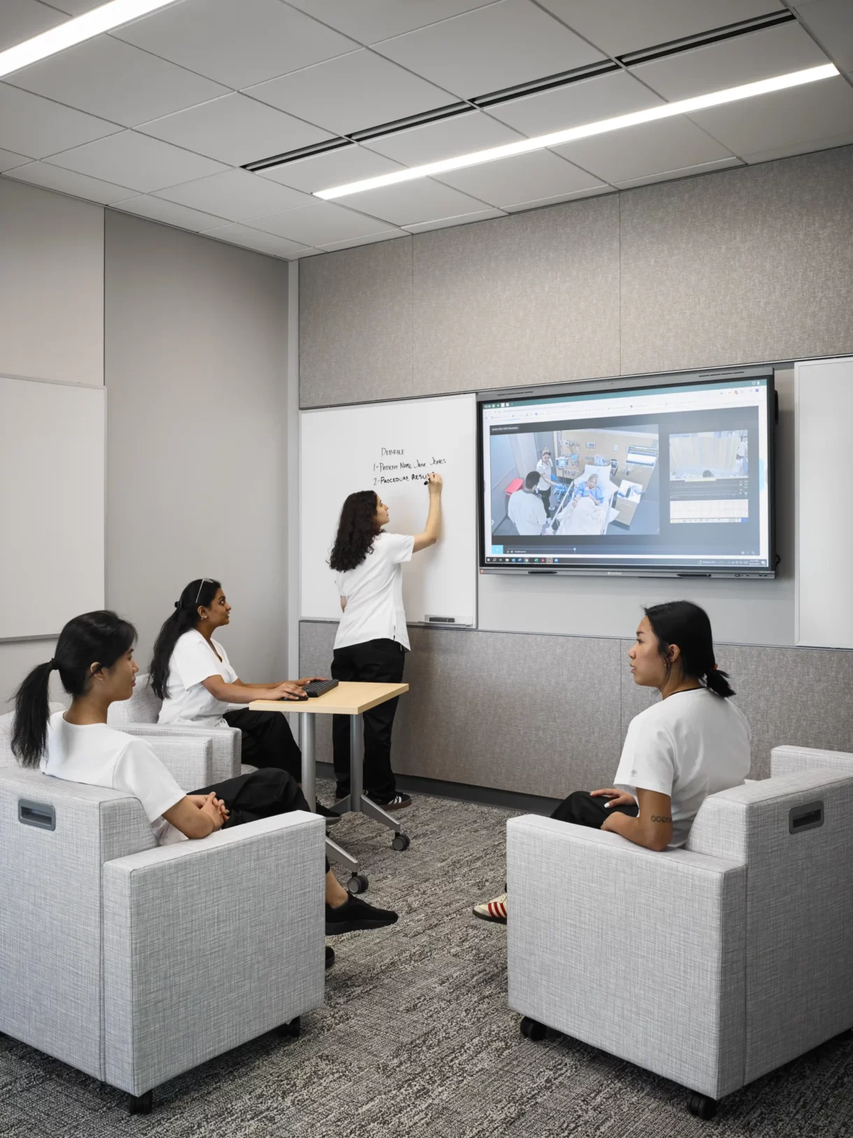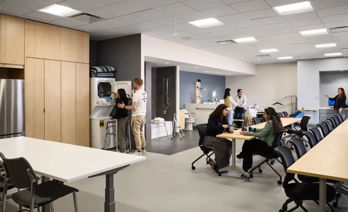 In association with Architect-of-Record Perkins + Will, JMT Architecture led the planning and design of the simulation and skills labs spaces. These purpose-designed spaces suit each specialty, from home care to pediatrics to an OT-focused makerspace. The highlight of the lab spaces is the immersive simulation corridor, which uses fixtures, finishes, and layout informed by research of real hospitals.