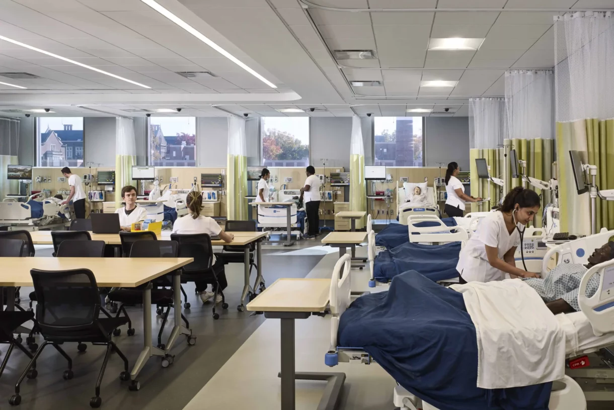 In association with Architect-of-Record Perkins + Will, JMT Architecture led the planning and design of the simulation and skills labs spaces. Our team provided the University with a mindful design that reflects its new brand identity and creates a flagship building for the health professions programs on campus. A six-story atrium connects the north and south entrances allowing for students to flow through the building and encouraging the campus population to utilize the common areas and café. Central to the commons is a large multipurpose auditorium for campus and public events.